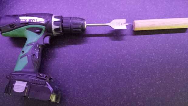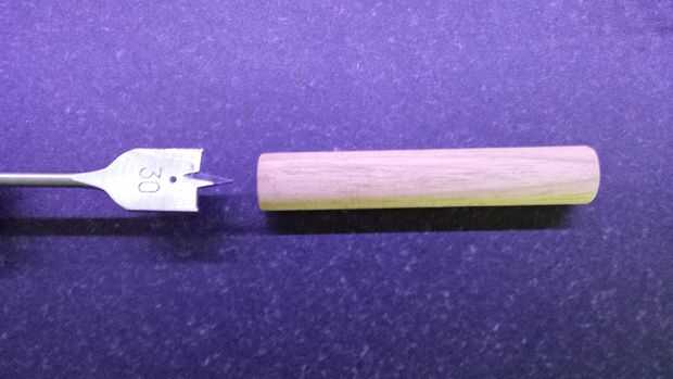 Medir el radio de su clavija de madera (por ejemplo, 15mm) y media el espesor de la plataforma (20mm) añadirlos junto (35mm)