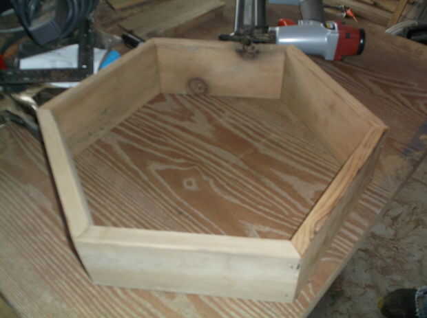 Cuando se juntan los hexágonos, seleccione piezas que son el mismo grosor y tamaño. Colocar el lado bueno de la Junta. El lado abajo del tablero será suave y hacia fuera de la pared. Usar a la clavadora, coche en perpendicular a la primera junta. Repetir con 4 tableros más, clavado el último en ambos extremos. Cuando tienes un hexágono.