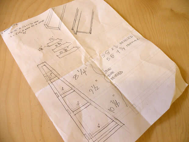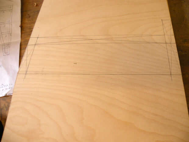 En primer lugar, utilice una sierra circular con una regla afianzada con abrazadera para cortar los lados. Son 47-1/2" alto, disminuyendo desde 8" hasta 12" más de 42". En otras palabras, empieza de la forma cónica 5-1/2" fuera de la tierra, lo que permite un"pie"de doble espesor en cada lado. Este cono funciona a aproximadamente 5° de la vertical.