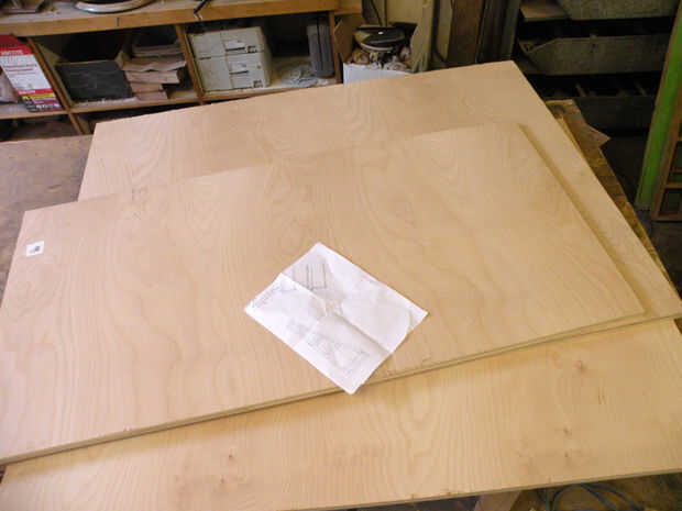 Empecé con dos piezas que fueron 3' x 4' y 1 pedazo que era 2' x 4'. Tuve que conseguir el completo de 4' x 8' hoja corta en la ferretería para que quepa todo en mi estante de la azotea.