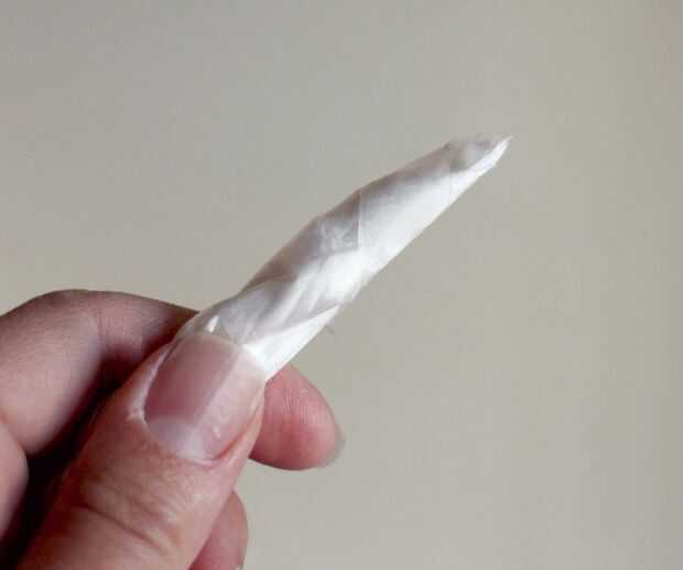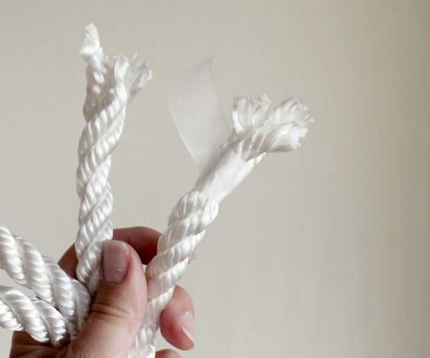 Con scotch o cinta adhesiva, enrollar ambos extremos de la longitud de cada cuerda de manera que son fáciles de poner a través de los agujeros en los estantes y no fray.