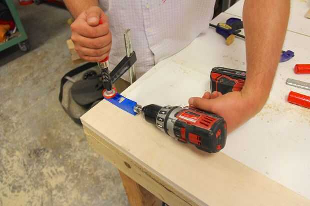 Taladro agujero un bolsillo en el extremo de cada estante y otro agujero de bolsillo hacia el poste de la esquina que se puede utilizar para la conexión de pasador de la cerradura en lugar.