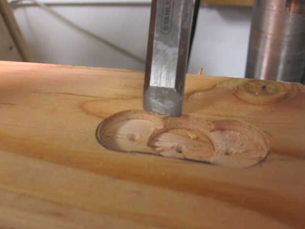 I limpiar las cosas con un cincel y montar el gancho de ojo de la cerradura.