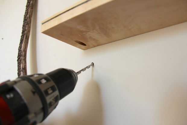 Quite el estante y perfore un agujero en la pared de yeso para caber el taquete de plástico.