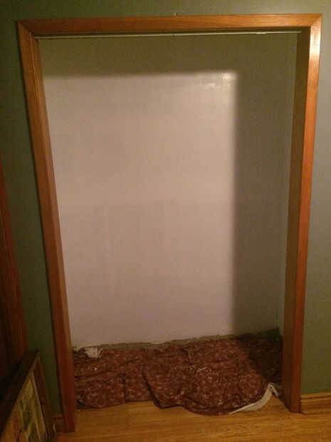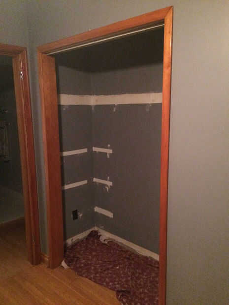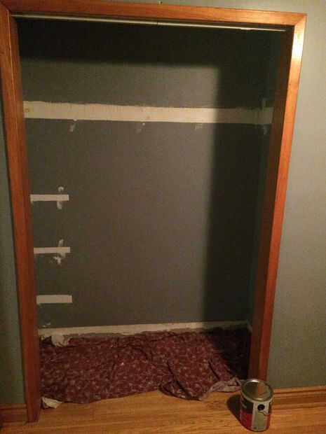 Esta parte es que auto explicativo, en su mayor parte pero básicamente eliminar las estanterías existentes o barras de la ropa, así como cualquier ajuste y tornillos o clavos dejados. Una vez que haya quitado todos los materiales existentes pueden preparación para pintura.