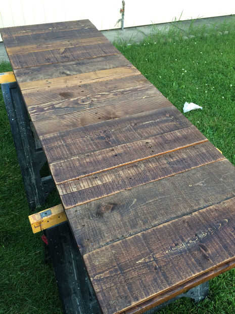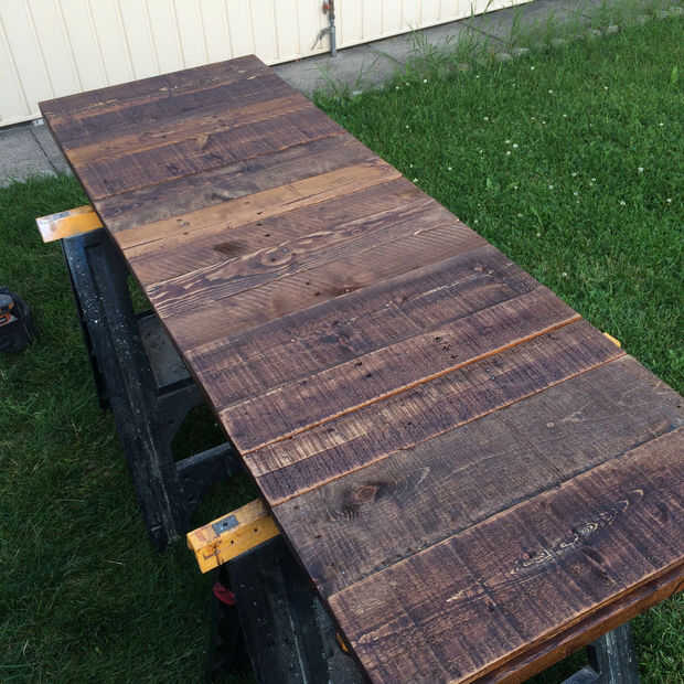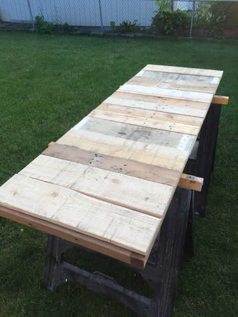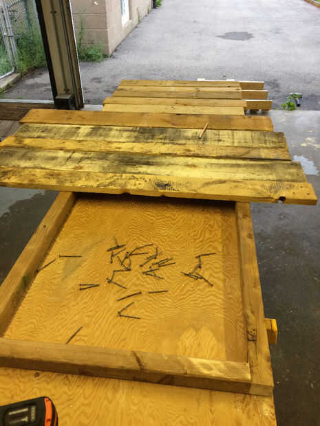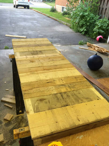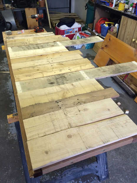 4 - una vez que tengas madera suficiente para cubrir el marco de la plataforma que puede empezar a poner las piezas. ** Prestar atención al color de la madera y lo ven mejor y organizarlas como quiere them.* *