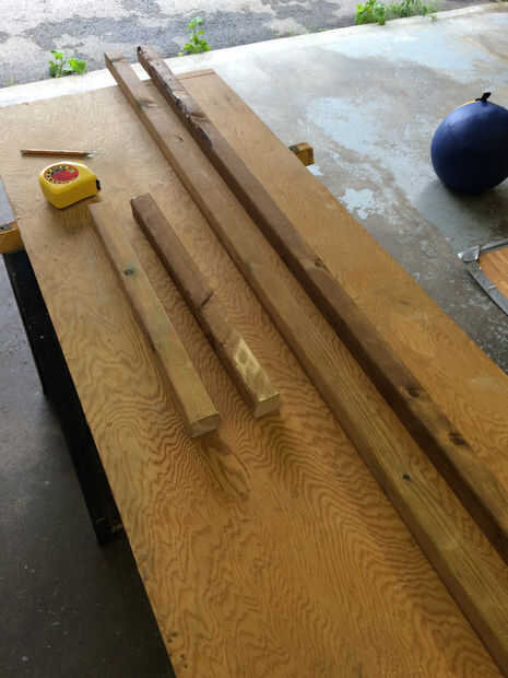 1 - cortar el 2 "x 2" x 6' piezas de presión trataron a la longitud que se ajuste a su espacio necesario. Cortar piezas de 2 a 63-1/4"(igual que mis estanterías) entonces quería mi parte inferior estante en cerca de 3" pulgadas desde el borde exterior de la pared del armario, así que me la repisa 21". lo que significa 21"-3" = 18" así que corte 3 piezas de soporte en 18" para fijar el marco de juntos.