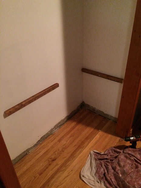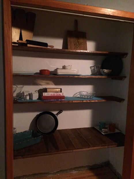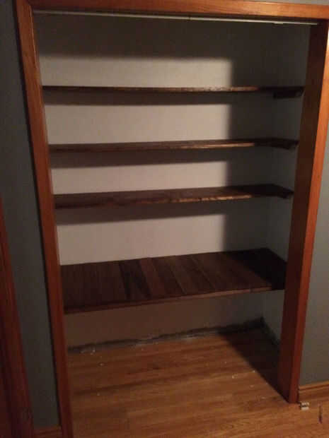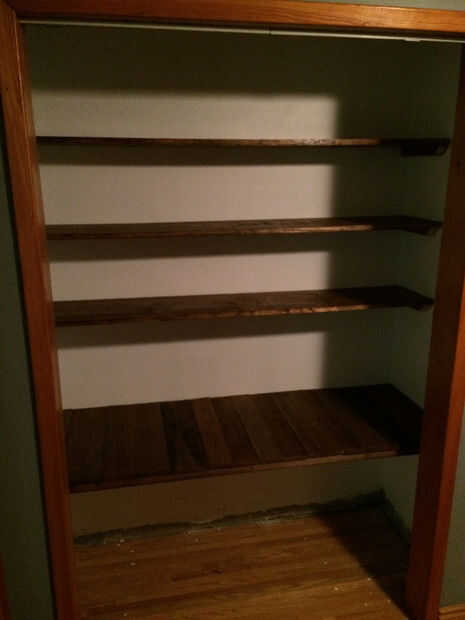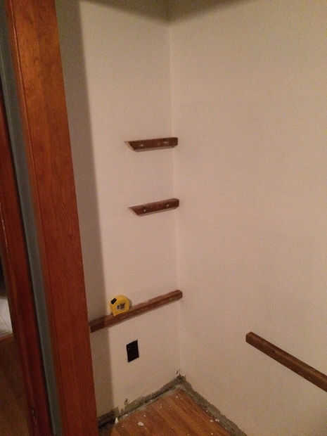 Estos estantes se estar montado con soportes hecha desde la izquierda tratada a presión de 2 "x 2" piezas de madera. Les instalé desde el estante más bajo y para arriba.