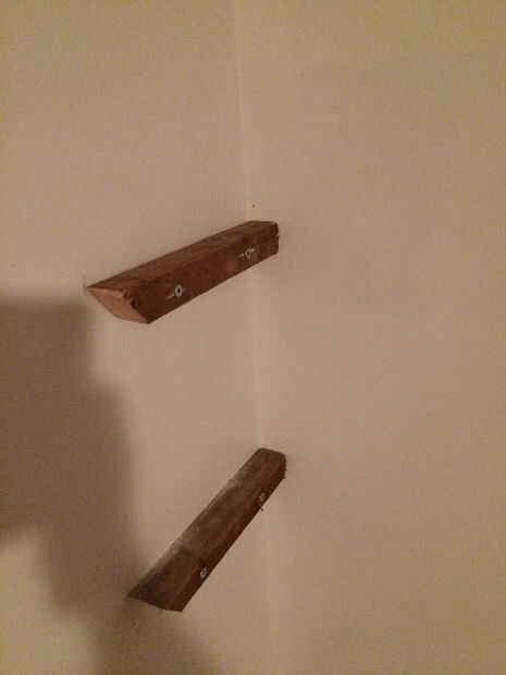 Garantizar estos soportes en el mismo señorío como el estante inferior con el yeso tapones y tornillos. Otra vez la altura de cada estante dependerá de sus preferencias personales pero hice mis estanterías;