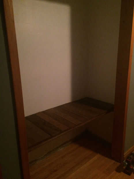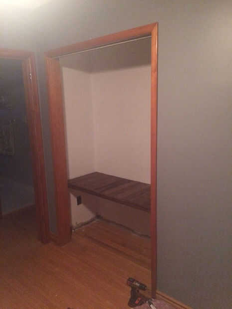3 - determinar la altura que quieres que su estante inferior para ser, el mio es unos 2' de la tierra, pero su preferencia muy personal. Ahora con un nivel Marque la altura de donde los soportes deben ser para la plataforma en altura de 2'. Así que marque la pared a 22" de la planta así que cuando la plataforma está sentado en el apoyo será 24" de la tierra.