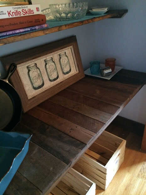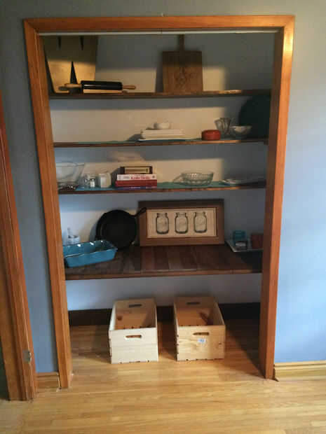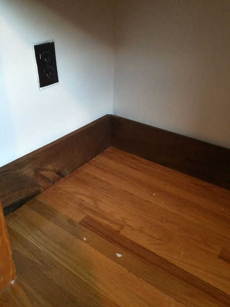 El área donde las carnes de piso, la pared estaba en forma muy áspera de rasgar hacia fuera el existir artículos estaban en el armario. Yo quería hacer mi propio adorno que era alto y se tiñen del mismo color de los estantes.