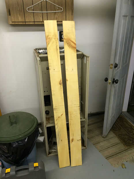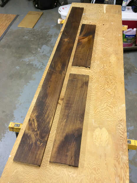 Usando una pieza extra de madera de pino rasgado por la mitad, creando dos tiras de madera de poco más de 5" de altura.