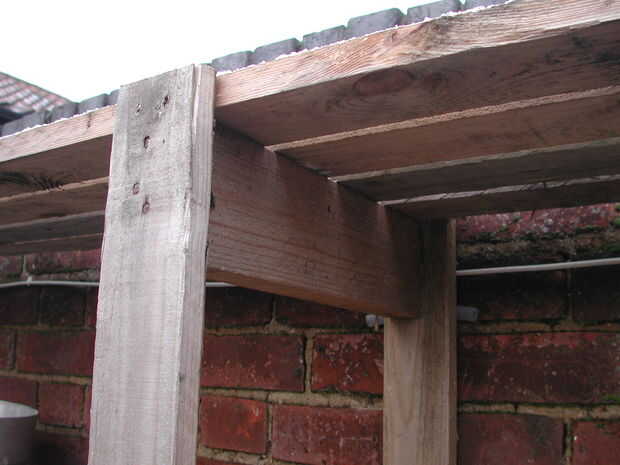 Assenbly es obvio y cuando llego el momento de hacer el paso por sreps voy a hacer un nuevo diseño mejorado. Estos estantes trabajan con montaje en una superficie plana grande y 20 oz martillo 2"(50mm) anillo clavos. He hecho uno con la mano pero una habilidad Sierra y plantilla para longitud hace que sea viable. Éste tiene dos secciones y más madera 61/2 pies de largo y los estantes son casi cuadrados vieron de frente pero no son impares como el espacio se divide.