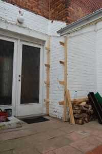 Hice cuatro estantes a una altura de aproximadamente 2 metros tan 50 cm entre cada estante.