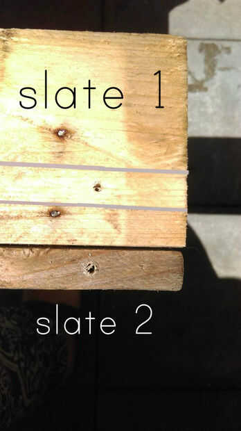 Marque primero el ancho del listón 2 en la parte posterior de la pizarra 1 a la altura que desee. Decidí hacer unos 2 cm desde la parte inferior.