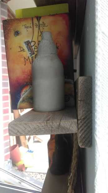 Una alternativa de sujetalibros de botella de cerveza es llenar una botella de cerveza con hormigón dejado seca durante la noche, luego romper el vidrio con un martillo. Listo sujetalibros de estilo Industrial (ver 3 fotos)