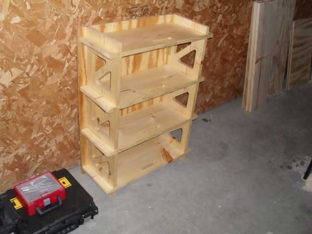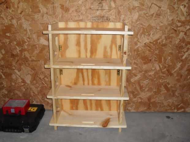 Quería un conjunto de estantes que podría ser doblado para arriba y si plano almacenado necesita ser. Quería algo que podía fácilmente moverse así. Esto es lo que se me ocurrió. Hice dos de estos estantes plegables.
