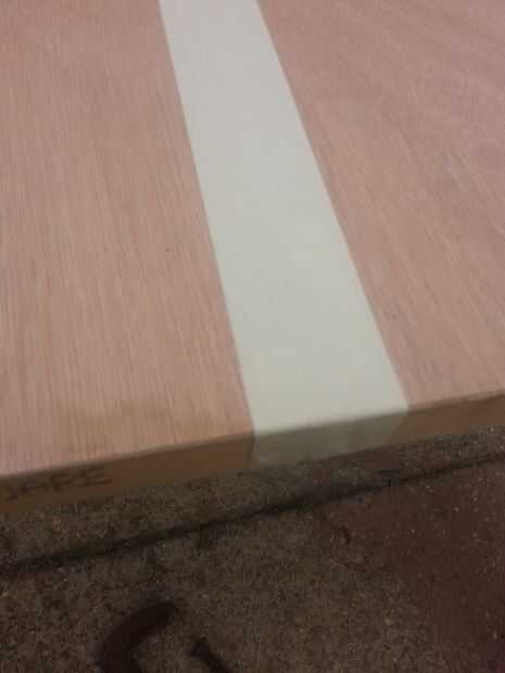 Corte ambas secciones de la puerta formas largo por la mitad. He utilizado una plantilla de sierra circular, pero puede utilizarse una sierra de mesa o cualquier otro tipo de sierra que se puede utilizar con un borde recto . Luego cortar las puertas a la longitud de uno mismo que está queriendo. Cortamos nuestro 4' que a la izquierda aproximadamente 3' para estantes más pequeños. Primer enmascarado las puertas que la hoja de sierra no se astillen las puertas.