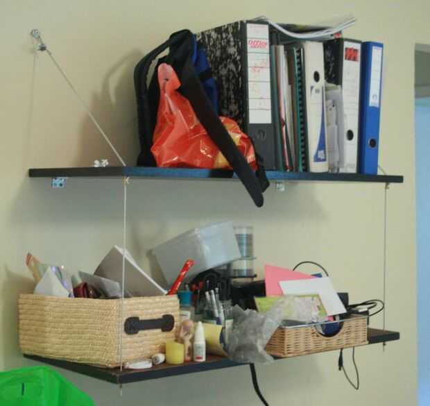 1. 4 abrazaderas eléctricas (los pequeños negros, realmente el color no importa) 2. Cuerda de alambre de 2 abrazaderas 3. Cuerda de acero - debería encajar en las pinzas eléctricas, por lo que se necesita de menos de 4-5 mm de diámetro. He utilizado 3m, si se construye más sheves necesita más cuerda. 4. ángulo 4 tacos de 5. 2 estantes - boardes madera sólida (son 80 cm x 30 cm, aunque quería más largo) luego encontré el el contenedor de basura. 6. tornillos - 8 x 2cm (para colocar grapas a las estanterías), 10 x 6-7cm (para colocar las calas y la cuerda para el hormigón). 7. 10 tacos plásticos para concreto 8 2 arandelas