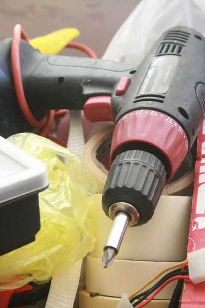 Herramientas: 1. eléctrico taladro destornillador con punta phillips. 2. eléctrico Taladro con broca de concreto de 6mm. 3. el pequeño destornillador de cabeza plana