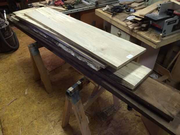Elegir la madera que se usan para hacer los estantes. Elegí Spalted Maple y nogal. He comprado esta madera de madera de Pittsford en Pittsford, Nueva York. Para los estantes deberá encontrar piezas que son dos veces la longitud del ancho de la plataforma que desee, además de por lo menos 4 pulgadas de corte los extremos dañados. Mis estanterías son 28 pulgadas de ancho, mis placas eran todos de 5 pies de largo. Para el estante Soporta tableros de necesidad que están a la altura deseada, más sin embargo alto desea el gabinete a ser. Mi altura de estante es de 60 pulgadas y el gabinete era de 17 pulgadas, así que compré tableros eran de 7 pies de largo. El espesor de las juntas de los soportes debe ser al menos 1 pulgada de espesor para acomodar las mortajas que se cortarán en ellos más adelante