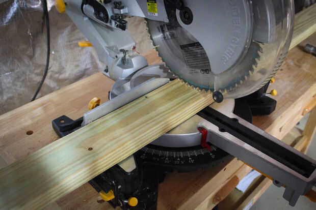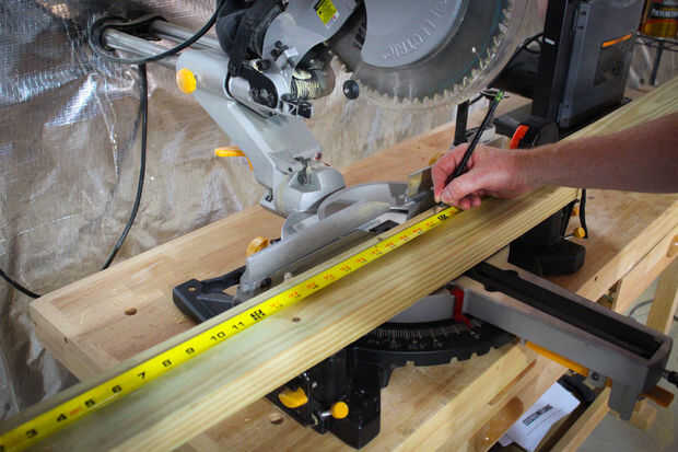 Cortar 2 x 4 secciones de 24". Utilizar una mano, circular, Sierra de mesa o ingletadora para estos cortes. Utilicé una sierra de inglete para todos los cortes de 2 x 4.