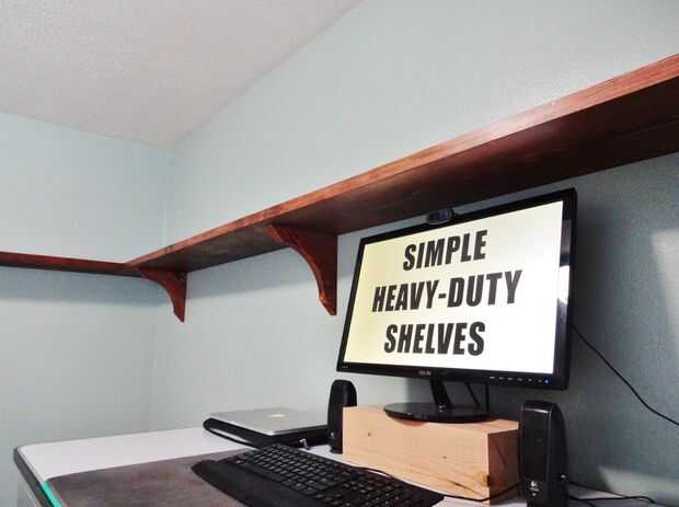 Los estantes están hechos de placas de grado de construcción de dos 2 por 12. Los estantes acabados son simple y minimalista, pero muy fuerte.