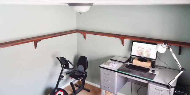No tiene mucho almacenaje, así que decidí añadir algunos estantes a lo largo de la longitud de dos de las paredes.