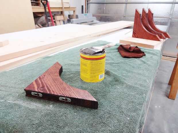 hecho un estante colgante simple de un pice de 24" largo x 3.5" de ancho x 3/4" espesor alisoLijado, teñido e hizo una capa de poliuretano.Corte 4 agujeros para algunas perillas de cajones de coste.Después de roscar en corta los hilos extra