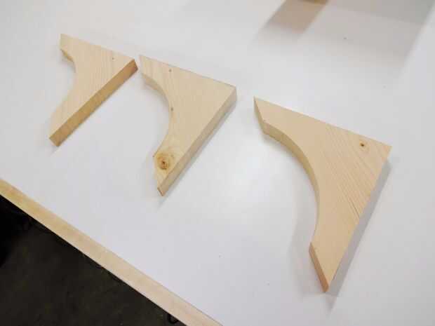 Para soportes de estante triangular simple como estos, es recomendable orientar el grano para correr diagonalmente como se muestra en las fotos.