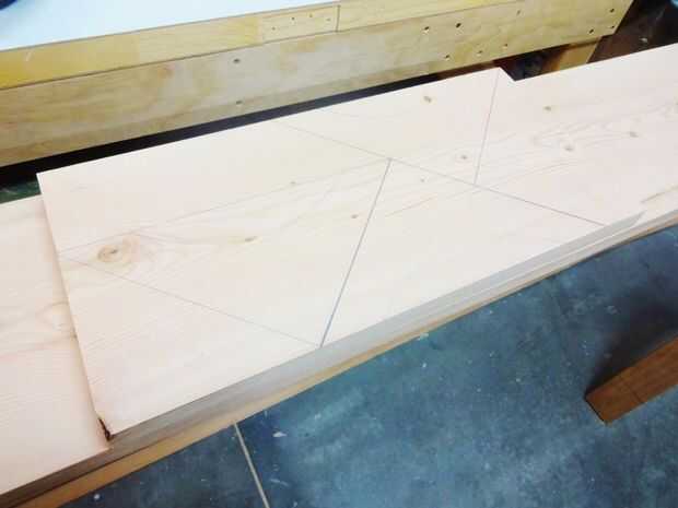 Con el resto de cortes, solía una sierra de cinta para cortar triángulo para convertirse en los soportes.