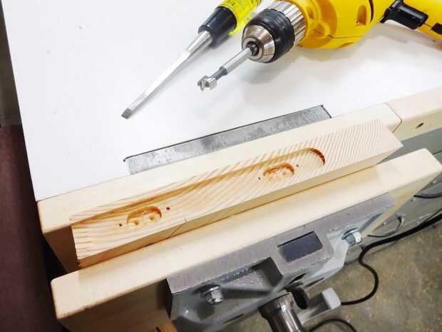 Hay muchas maneras de hacer esto. Decidí perforar cuidadosamente el área con una broca de 1/2 forstner. Se eliminaron los guiones mediados de la forma "8" de la broca con un formón afilado.