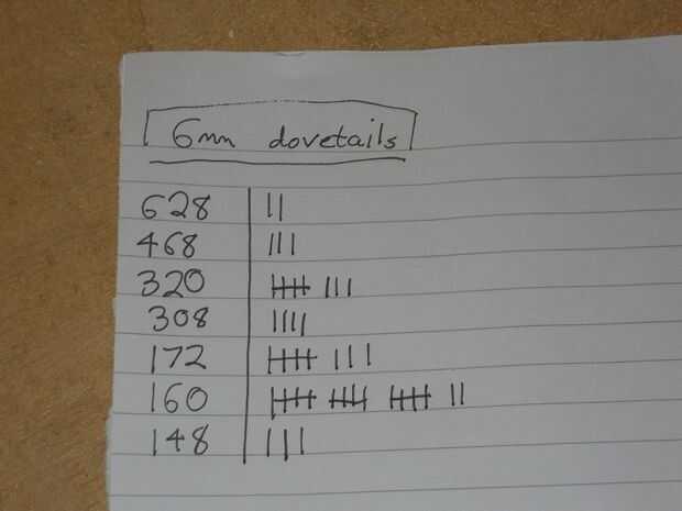 Una vez estaba contento escribió todas las medidas como una "hoja de referencia de la vertiente" y tomó a mi pequeño taller.