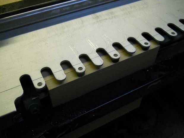A continuación, configurar la plantilla de cola de Milano, prueba y ajuste con algunos recortes hasta que los empalmes están saliendo apenas a la derecha. Opté por usar dientes de 6mm.