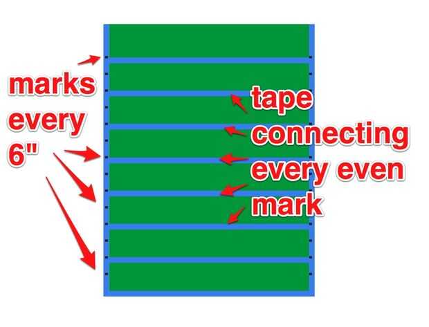 a lo largo de cada lado largo, marcar con rotulador cada 6 pulgadas para un total de 14 marcas.