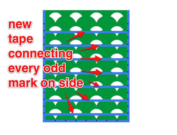 Con el lugar, marcar apagado cada 18" sobre la pieza superior de la cinta y utilice como guía para marcar apagado el resto de las piezas.