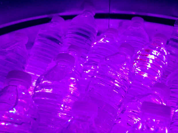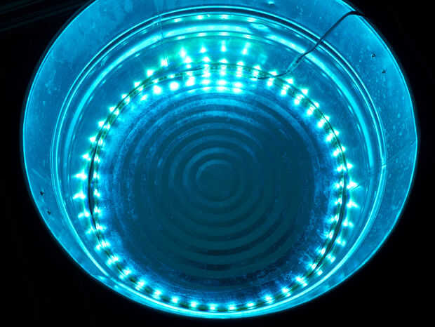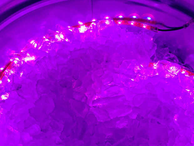 Acaba de dejar estas luces en la tina y el efecto funciona muy bien. Si quieres un look más limpio, puede perforar un agujero en el lado a lo largo de la parte inferior y conecte las luces de esa manera. Utilice una pistola de pegamento caliente para sellar el agujero.