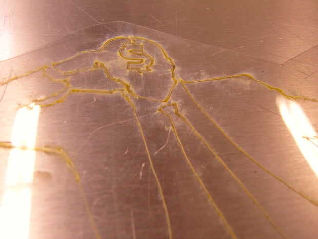 Realmente no sostenga la plantilla todavía muy o aplanar con cuidado contra la superficie, por que la plantilla es un poco borrosa.