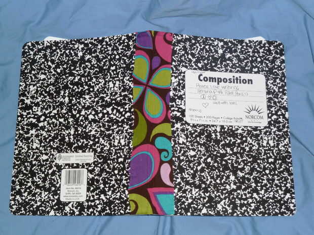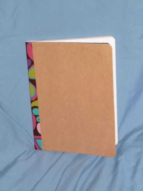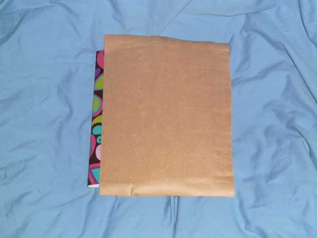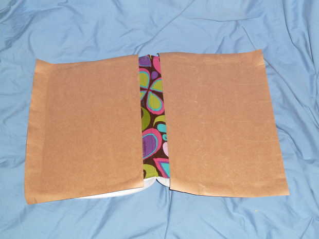 Agarra el calefactorio y su papel. Cortar dos piezas y péguelas a las cubiertas. Coloque algo heavyish en la parte superior para que se seque completamente y no Haz alabeado. Mientras que se está secando, agarra a la tela de su espina dorsal y corte un pedazo lo bastante grande como para adaptarse a la columna vertebral. Asegúrese de que es tiempo suficiente para plegar en cada extremo (esto reduce desgaste). Me gustaria probar la longitud de la tela en el lomo de un libro que actualmente no estoy decorando. Los extremos de hierro, luego pegarlos abajo. Usted puede 'dobladillo' los lados largos de la tela de la columna vertebral si te gusta pero no porque mi papel va a cubrirlas.