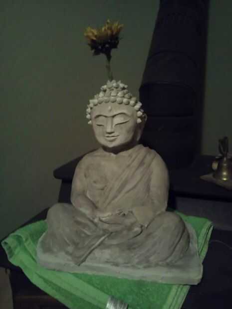 Yo he ido esculpiendo cabezas últimamente para máscaras y decidí que, como una rotura, esculpir algo que materialmente siempre he deseado, ser dueño de una estatua de Buda (soy definitivamente consciente de la ironía de esto).