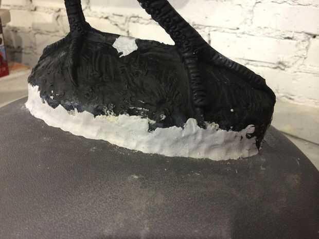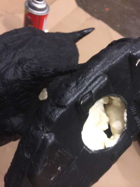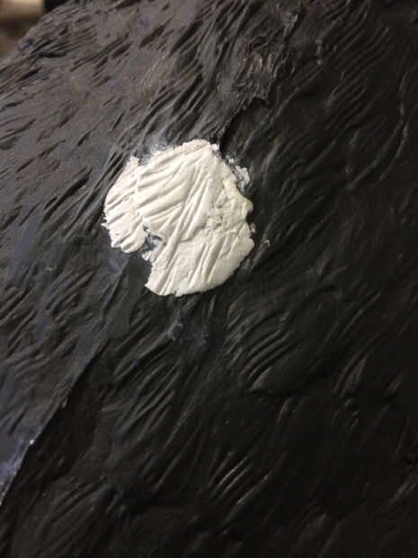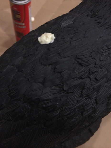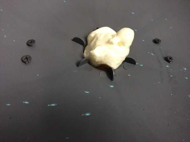 Una vez que el aislamiento de la espuma curada y firme, recorte cualquier exceso para permitir efectivamente aplicar masilla epoxy como el acabado sólido. Trabajando en pequeños lotes, mezclar las dos partes de la masilla y en su lugar alrededor de la base de la trampa, fusionando al deflector de ardilla. Terminar de llenar los agujeros de la trampa, añadiendo impresiones para fusionar el parche con el plástico alrededor.