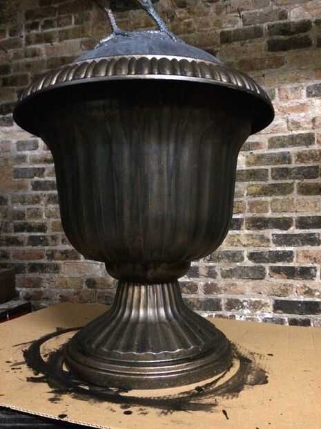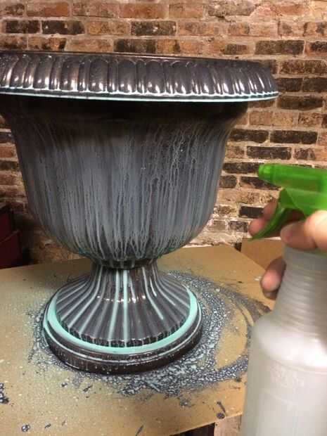 Usé un 50% agua diluye negro plano latex pintura sobre plantador. La jardinera está menos expuesto a los elementos y la pintura de látex es menos probable que desaparecen en la lluvia en ese componente. La pintura de látex diluida permite más control sobre sombreado y textura de la pintura en aerosol.