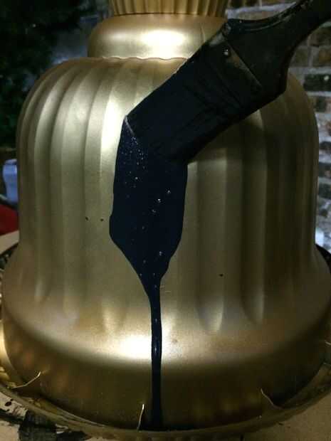 Comenzar pintando todo con pintura de aerosol metálica oro destinado al uso en el plástico, o primero con una imprimación plástico.