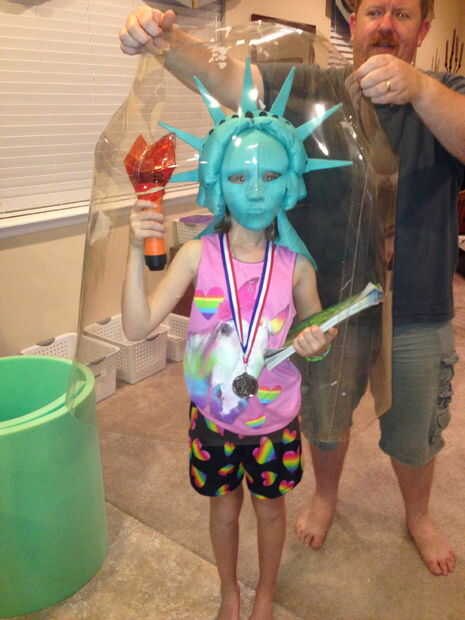 Con la cúpula completa comenzó a trabajar en la base. Recortamos un rectángulo grande de espuma verde y varios triángulos pequeños que nos pega a los lados de la base es una especie de formación estelar que mímico la fortaleza que fue construida la estatua de la libertad. Esto fue pintado gris piedra.