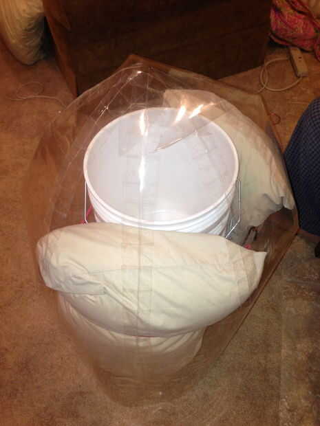 Del enchufe que corte de la base cortamos otro enchufe grande dejando una 3" dona de espuma alrededor del exterior. Este donut fue pegado en el interior de la cúpula de acetato. Además esto ayudó a estabilizar la cúpula.