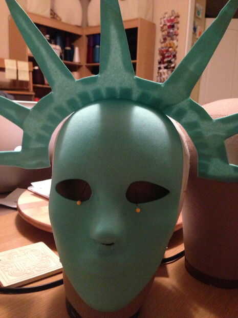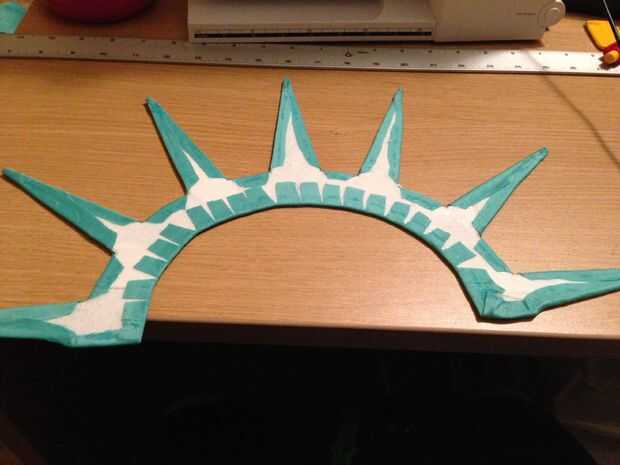 Decidimos que queríamos como gran parte de la estatua del traje como sea posible a cubrirse en el mismo material verdoso que nos sentimos de cerca asemejadas el color de la estatua.