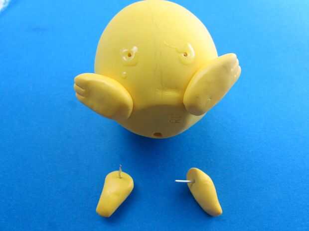 He hecho las piernas haciendo una forma oblonga con un instrumento de aguja, dos líneas con sangría para hacer los dedos del pie. Los miembros superiores se fabrican de manera similar pero más pequeño en tamaño. Añadir algunos arcilla líquida alrededor de los orificios y pegue la armadura en las extremidades después introducir las armaduras en su lugar.
