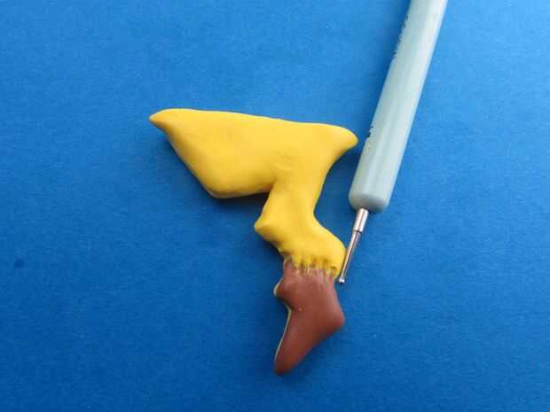 Para la cola, cubrir el otro lado con arcilla cortando el contorno de la pieza al horno y redondeando los bordes. Hice este paso porque el otro lado era demasiado plano. Luego cubrir la parte inferior con arcilla marrón. Coloque la cola en la espalda mediante la adición de alguna arcilla marrón en las franjas que actúan como un ancla.