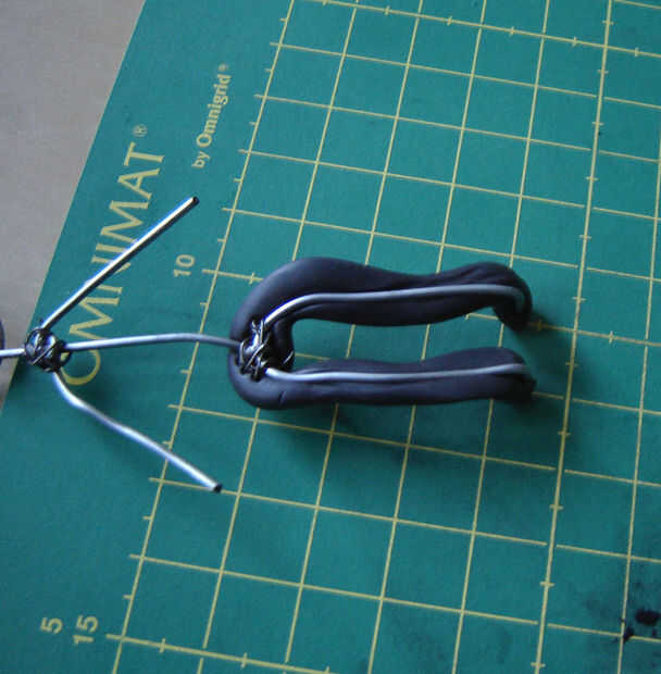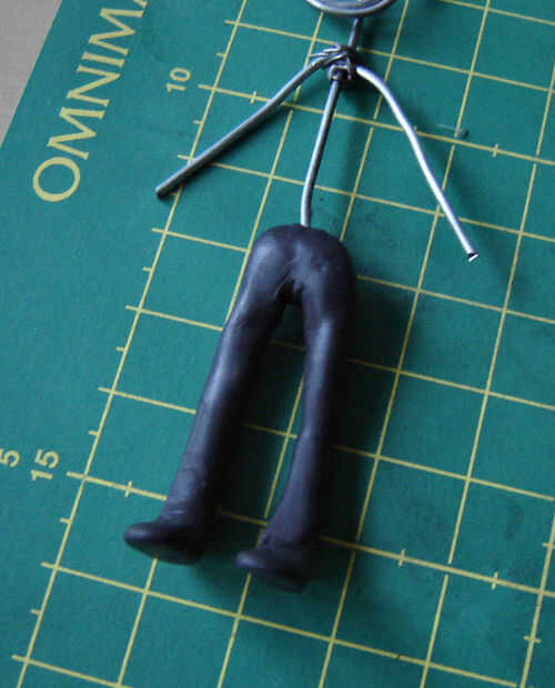 • Enrollar los tallarines alrededor de la armadura de la pierna y pies y suavizar para que está completamente cubierto (pinch cualquier sobrante en el extremo).