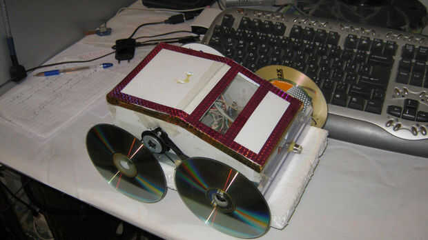 Hemos creado un robot para una competencia de robótica del colegio. La competencia fue controlar remotamente un robot que podría recoger una pelota de golf, maniobra de un curso que incluye puentes apretadas vueltas y una pista de pendiente de 30 gra